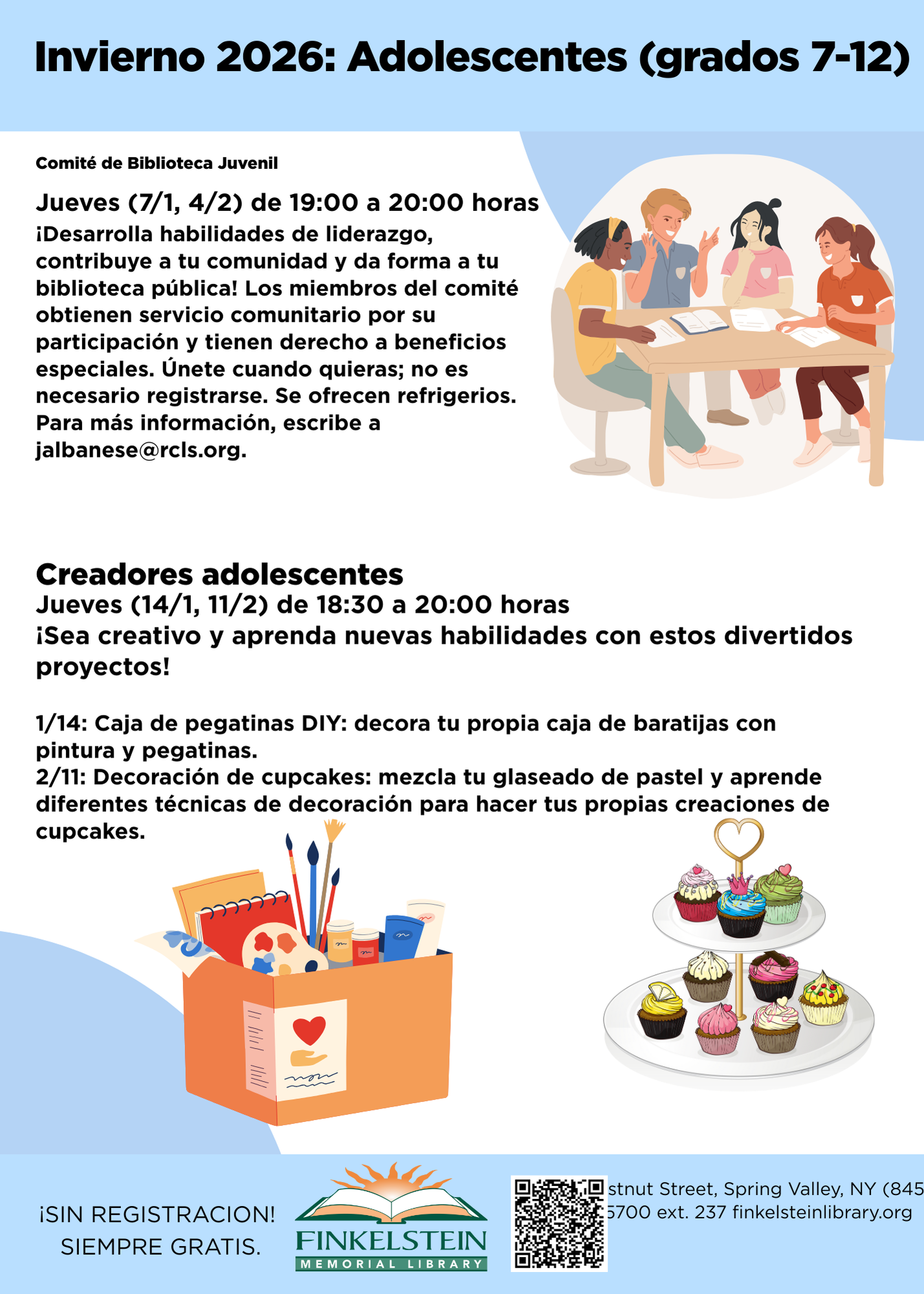 Gain leadership skills, contribute to your community, and shape your public library! TLC members earn community service for participation and are eligible for special perks. Join any time, no registration required. Snacks provided. Email jalbanese@rcls.org for more information.